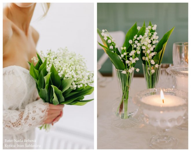 Kytica z konvaliniek vyniká svojou minimalistickou krásou a silnou symbolikou. Je jemná, no charakteristická, neokázalá, no výrazná. Drobné biele kvety v tvare zvončekov, sýtozelené listy a decentná vôňa vytvárajú elegantný celok, ktorý pôsobí čisto, pokojne a hlboko žensky. Práve pre tieto vlastnosti si konvalinky ako svadobnú kyticu zvolili aj Grace Kelly a Kate Middleton.