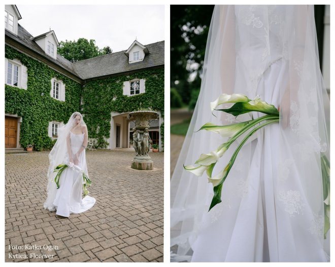 Nie každá kytica potrebuje vrstvy, stuhy a efektné listy. Niekedy práve absolútna jednoduchosť vytvára ten najsilnejší dojem. Dlhé biele kaly, držané voľne v jednej ruke, pôsobia čisto, sebavedomo a veľmi súčasne. Bez dekorácií, bez pridaných prvkov, bez zložitých väzieb – len čistá línia, aby mohla vyniknúť ich sošná krása.