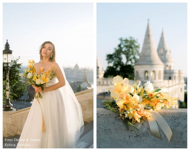 Žlté tóny v kytici symbolizujú radosť, energiu a optimizmus – presne tie emócie, ktoré krásne vystihujú svadobný deň. Takáto kytica pôsobí sviežo a moderne, pričom si zachováva eleganciu a jemnosť. Žltá farba vynikne samostatne, no rovnako dobre funguje aj v kombinácii s bielou alebo jemnými pastelmi. Dodáva aranžmánu jasný akcent, ktorý okamžite púta pozornosť a rozžiari celkový vzhľad nevesty. Je to voľba pre ženy, ktoré chcú do svojho svadobného štýlu vniesť iskru optimizmu a dopriať si detail, ktorý bude pôsobiť prirodzene, ale zároveň nezabudnuteľne.