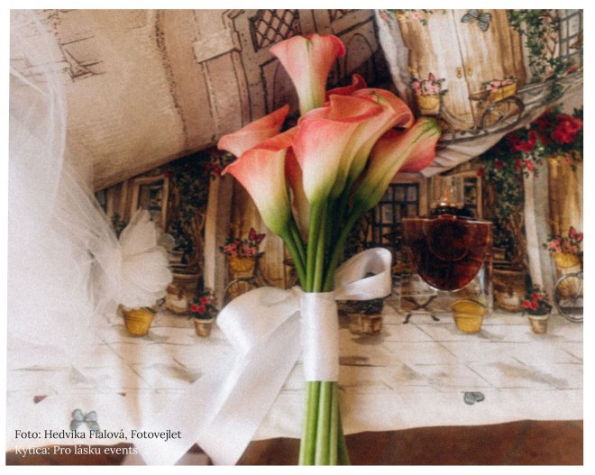 Táto verzia svadobnej kytice stavia na jednoduchosti, no s premysleným efektom. Krátko zrezané kaly v pastelovo ružovom odtieni s jemným prechodom do krémovej sú zviazané saténovou stuhou a vytvárajú čistú, upravenú a veľmi fotogenickú kyticu. Bez zbytočných dekorácií alebo lístia nechávajú vyniknúť samotný kvet – jeho farbu, štruktúru aj tvar.